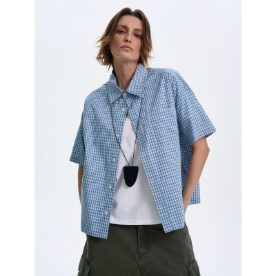 Texture plaid short sleeved shirt for men and women, loose casual vintage couple's top jacket ins